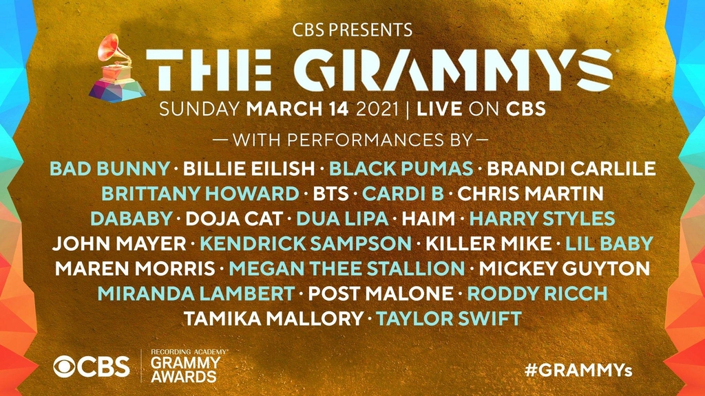 | ▲ This image from CBS' Twitter account on March 7, 2021, shows the full list of performers at the upcoming Grammys. (PHOTO NOT FOR SALE) (Yonhap) |