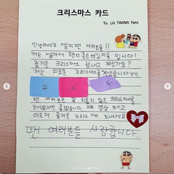 프로야구 LG 트윈스 신인, 자필 편지로 크리스마스 인사