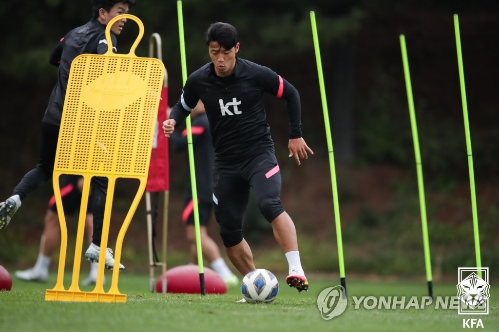 | ▲ Hwang Hee-chan of the South Korean men's national football team trains at the National Football Center in Paju, Gyeonggi Province, on Oct. 5, 2021, in preparation for 2022 FIFA World Cup qualifying matches, in this photo provided by the Korea Football Association. (PHOTO NOT FOR SALE) (Yonhap) |