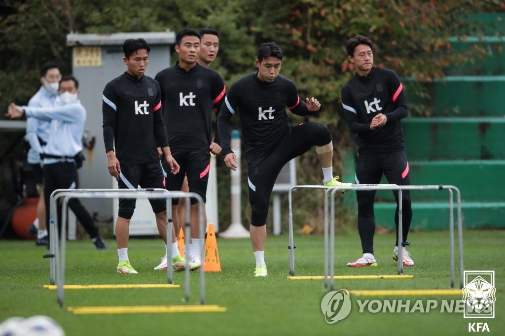 | ▲ Members of the South Korean men's national football team train at the National Football Center in Paju, Gyeonggi Province, on Oct. 5, 2021, in preparation for 2022 FIFA World Cup qualifying matches, in this photo provided by the Korea Football Association. (PHOTO NOT FOR SALE) (Yonhap) |
