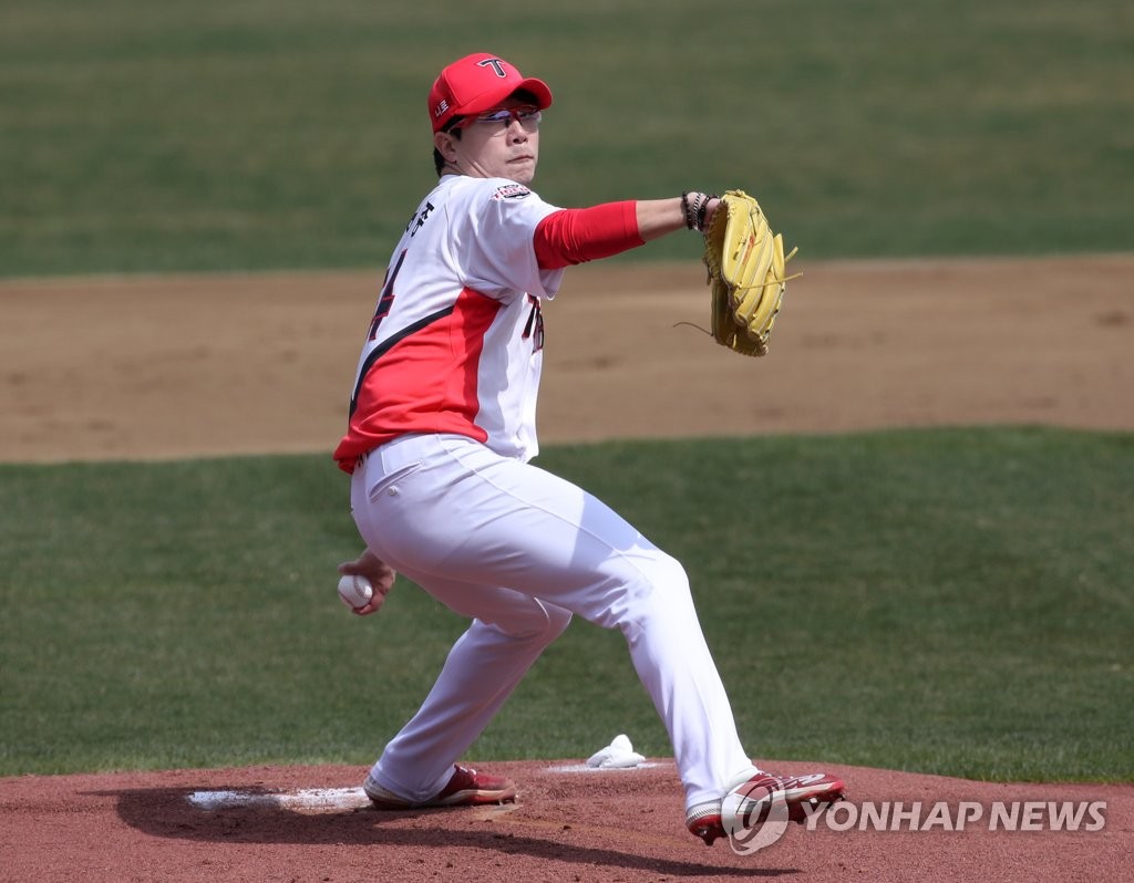 | ▲  In this file photo from March 22, 2022, Yang Hyeon-jong of the Kia Tigers pitches against the Doosan Bears during the top of the first inning of a Korea Baseball Organization preseason game at Gwangju-Kia Champions Field in Gwangju, some 330 kilometers south of Seoul. (Yonhap) |
