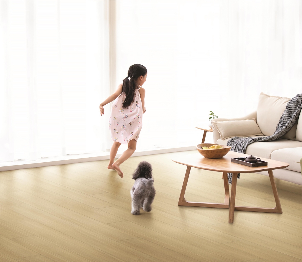 ▲ 건축자재·인테리어 전문기업 한솔홈데코[025750]는 반려동물을 위한 맞춤 마루 제품 '한솔펫마루'를 출시했다고 24일 밝혔다. 이 제품은 반려동물 부상을 방지하기 위한 논슬립 기술, 배설물 오염과 냄새를 저감하는 자재를 적용했다. 또한 포름알데히드가 들어가 있지 않고 SIAA(일본 항균인증) 인증을 받은 표면재를 적용해 항균·항곰팡이 효과도 가지고 있는 친환경·안전 제품이라고 한솔홈데코는 소개했다. (서울=연합뉴스)