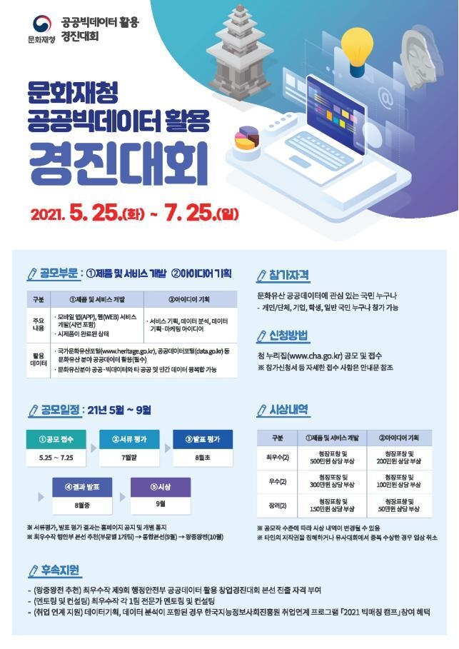 문화재청이 제공하는 공공데이터를 활용해 제품과 서비스를 개발하거나 새로운 아이디어를 제시하면 된다.