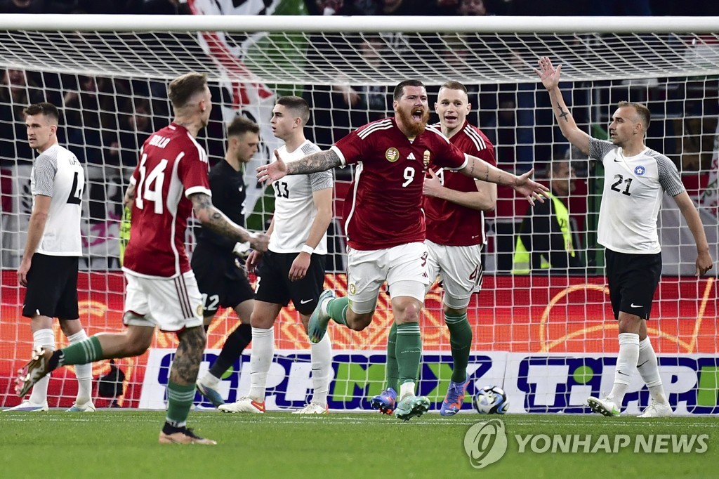 | ▲ 에스토니아와의 친선경기에서 결승 골을 터트린 뒤 환호하는 헝가리 마틴 아담(9번). [EPA=연합뉴스 |
