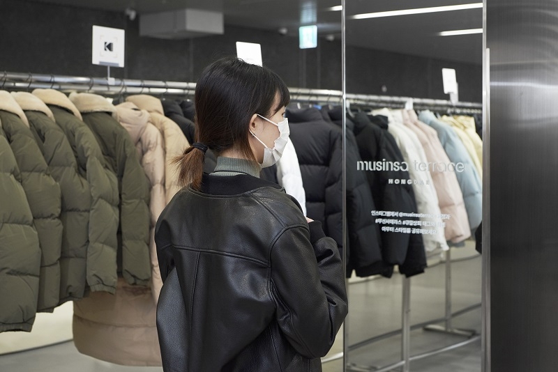 이곳에서는 무신사에서 판매 중인 외투 400여종을 직접 입어볼 수 있다.