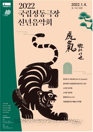 국립정동극장이 설립 27년 만에 처음 선보이는 신년 음악회로, 전통·뮤지컬·클래식 등 여러 장르 무대로 꾸민다. 민화 속 호랑이를 다양한 영상으로 제작해 음악과 함께 즐길 수 있도록 구성한다.