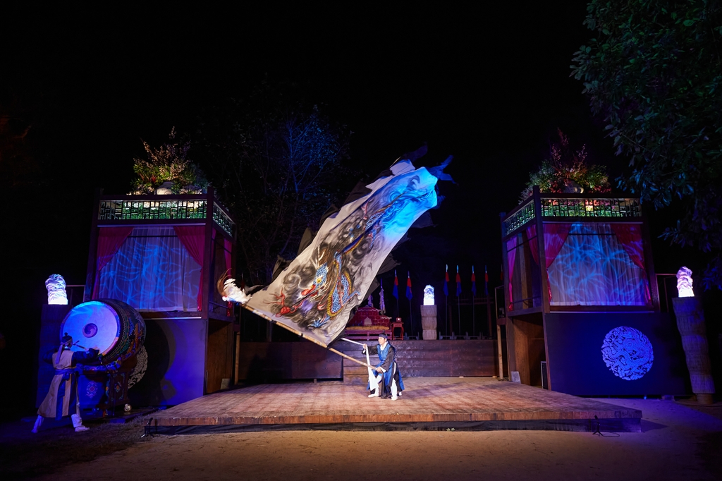 '융건릉 야조'는 1795년 정조와 그의 모친인 혜경궁 홍씨가 사도세자 무덤인 현륭원을 참배하고 서장대에서 군사훈련을 참관한 기록을 활용해 만든 공연이다.