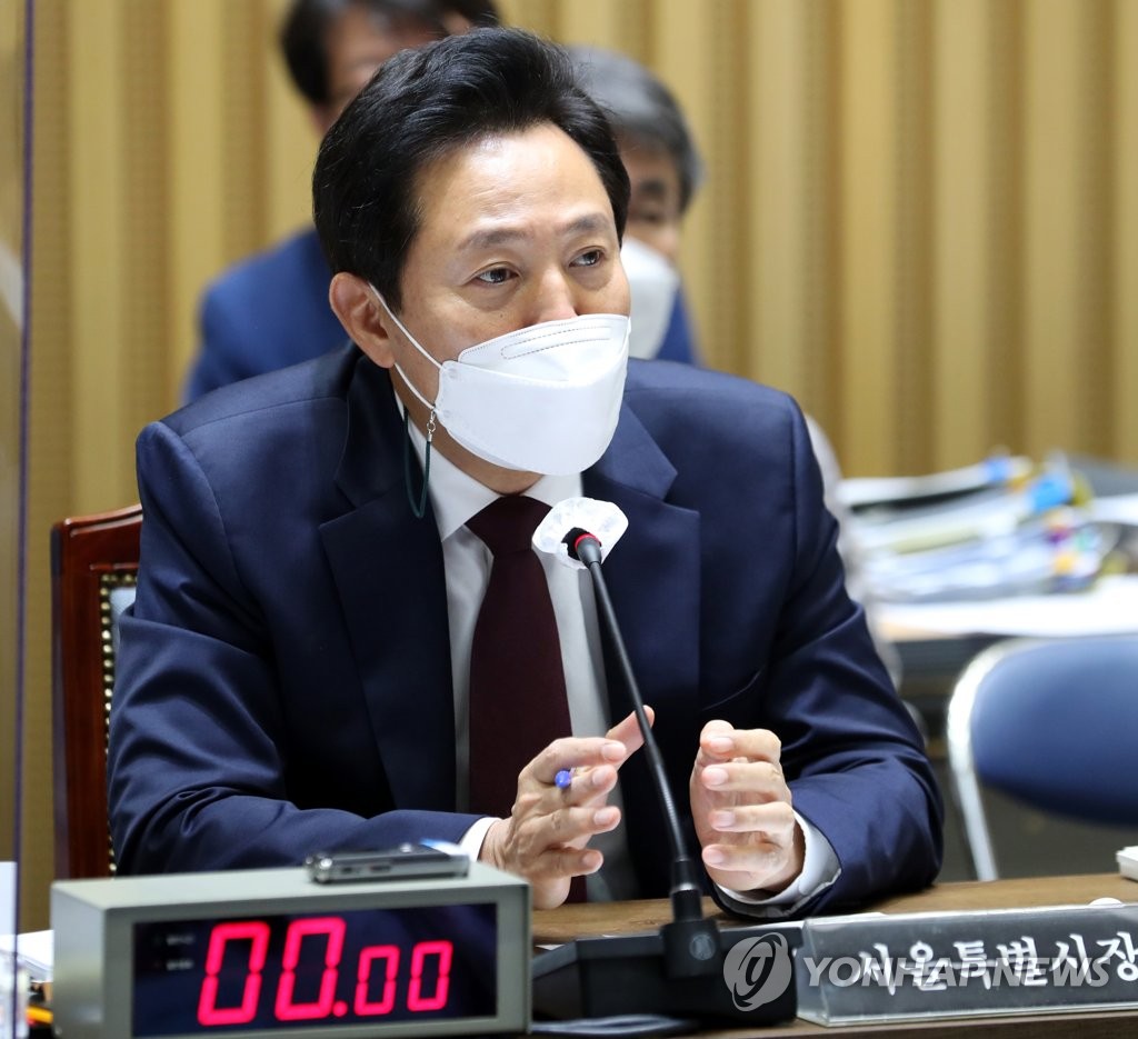 ▲ 답변하는 오세훈 시장 (서울=연합뉴스) 전수영 기자 = 오세훈 서울시장이 지난 19일 서울시청에서 열린 국회 행정안전위원회의 서울시 국정감사에서 의원들의 질의에 답변하고 있다. 2021.10.19 [국회사진기자단]