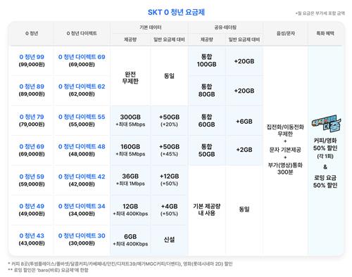 SKT, 0 청년 요금제 7종 공개…만 34세 이하 대상