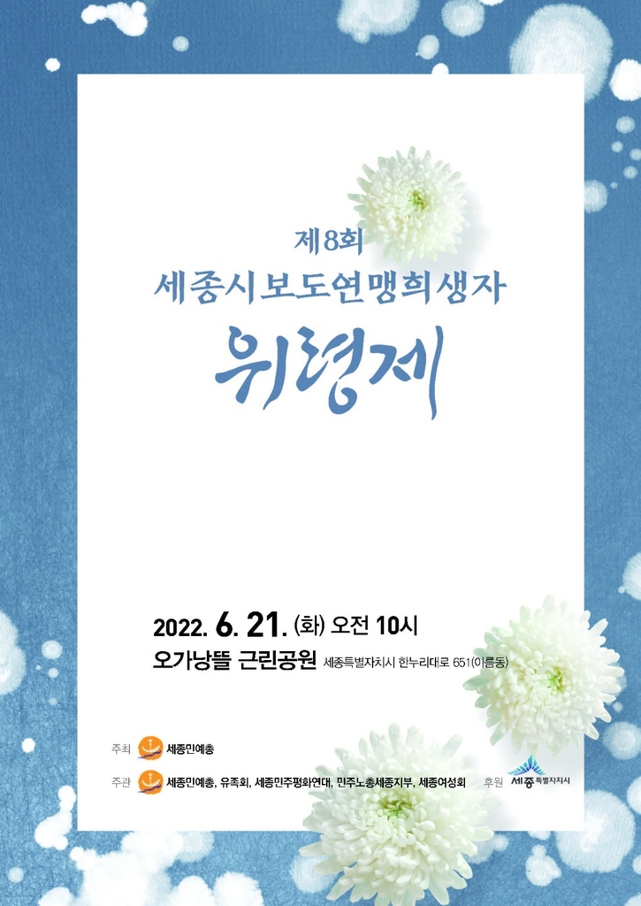 세종민예총과 유족회, 세종민주평화연대, 민주노총 세종지부, 세종여성회가 공동 주최하는 이 행사는 제례와 추모식, 추모공연 순으로 진행된다.