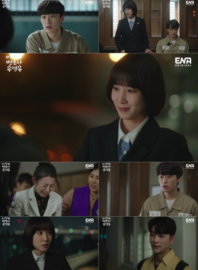 총 16부작인 '우영우'는 전반부에 자폐 스펙트럼을 가진 우영우가 변호사가 될 수 있을지 능력을 증명하는 과정에 집중했다면, 후반부에서는 외부에 알려지기 시작한 출생의 비밀과 우영우와 송무팀 직원 이준호(강태오 분)의 로맨스를 본격적으로 전개하고 있다. 10회에서는 우영우와 이준호의 키스신도 담겼다.