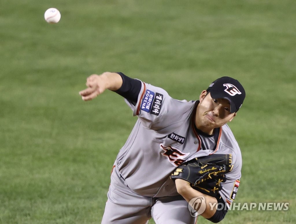 ▲ In this file photo from Oct. 14, 2020, Kim Min-woo of the Hanwha Eagles pitches against the Doosan Bears in the bottom of the first inning of a Korea Baseball Organization regular season game at Jamsil Baseball Stadium in Seoul. (Yonhap)