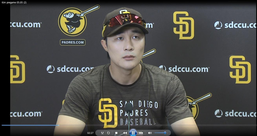 | ▲ 화상 인터뷰하는 김하성 (서울=연합뉴스) 김하성은 6일(한국시간) 미국 캘리포니아주 샌디에이고의 펫코파크에서 열린 2021 미국프로야구 메이저리그 피츠버그 파이리츠와의 홈경기를 앞두고 화상 인터뷰하고 있다. [샌디에이고 파드리스 화상 인터뷰 캡처. 재판매 및 DB금지] |