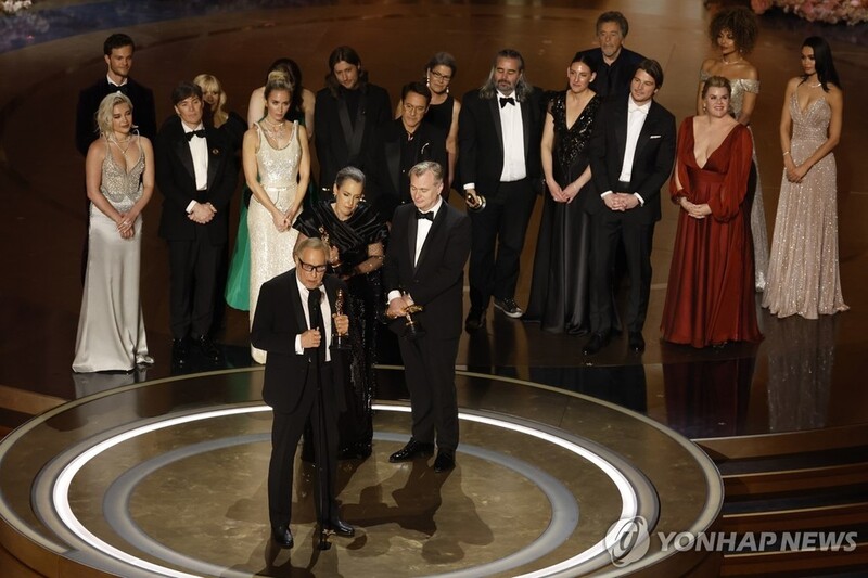 | ▲ 오스카 작품상 수상한 '오펜하이머' 제작·출연진 [EPA=연합뉴스. 재판매 및 DB 금지] |