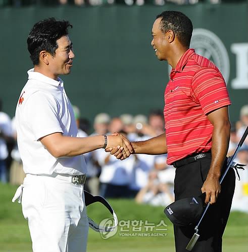 | ▲ 2009년 PGA 챔피언십 우승 직후 타이거 우즈와 악수를 하는 양용은 [EPA=연합뉴스] |