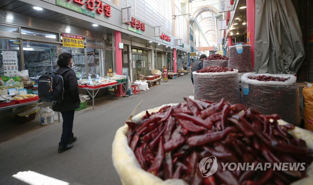 | ▲ This photo taken on Feb. 2, 2021, shows a customer walking through a traditional market in Gwangju, 330 kilometers southwest of Seoul. (Yonhap) |