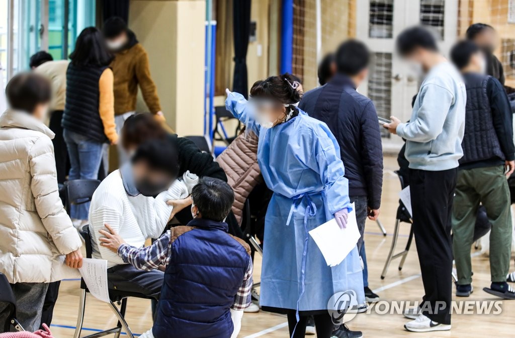 | ▲ Students wait to get COVID-19 vaccine shots at a school in Daegu, about 302 kilometers south of Seoul, on Dec. 16, 2021. (Yonhap) |