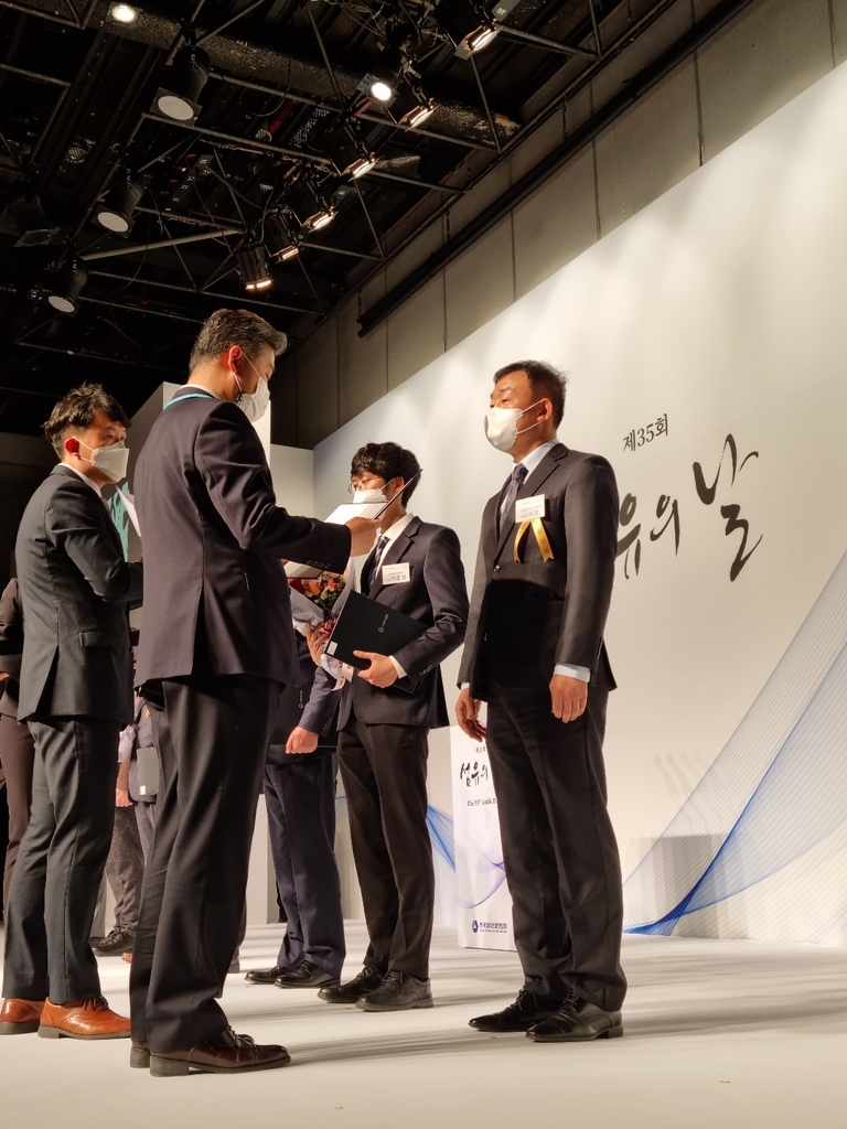 ▲ 부산섬유패션산업연합회(회장 박만영)는 11일 서울 섬유센터빌딩에서 열린 제35회 섬유의 날 기념식에서 산업통상자원부 장관상을 받았다. 한국섬유산업연합회가 주최하고 산업통상부와 27개 섬유패션 단체가 후원한 섬유의 날 기념식에서는 섬유산업 발전에 기여한 모범 섬유인과 단체를 선발·포상한다. 부산섬유패션산업연합회는 1996년 설립 인가를 받은 비영리단체로, 수요기업 맞춤형 인력양성, 한복 거점 지원, 도심형 봉제 지원, e커머스 지원 등 섬유 패션산업 컨트롤타워 역할을 하고 있다. 박만영 연합회 회장은 "지역산업 발전을 위한 꾸준한 노력을 인정받아 기쁘다"라며 "기관과 단체, 기업 간 협력을 통해 섬유패션산업 생태계에 활력을 불어넣겠다"라고 말했다. (부산=연합뉴스)