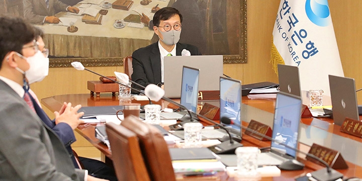 | ▲ 금융통화위원회 본회의 주재하는 이창용 총재 (서울=연합뉴스) 이창용 한국은행 총재가 26일 서울 중구 한국은행에서 열린 금융통화위원회 본회의를 주재하고 있다. 2022.5.26[한국은행 제공. 재판매 및 DB 금지] photo@yna.co.kr |