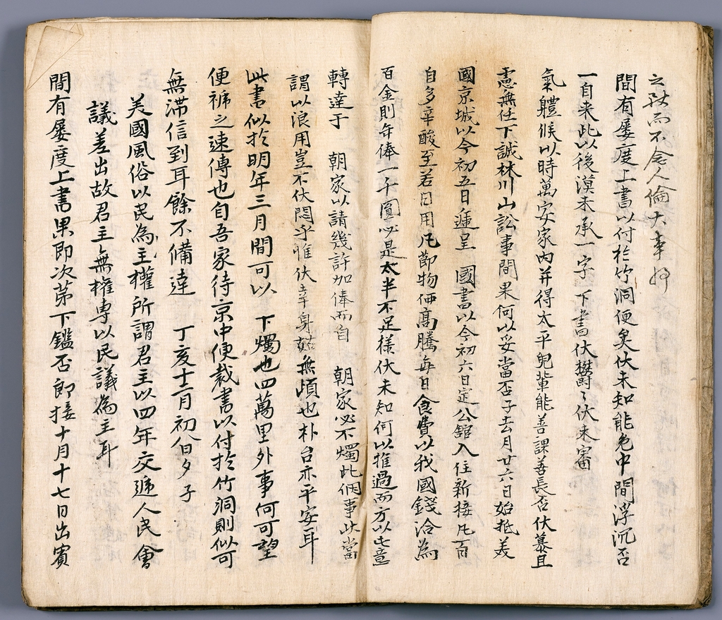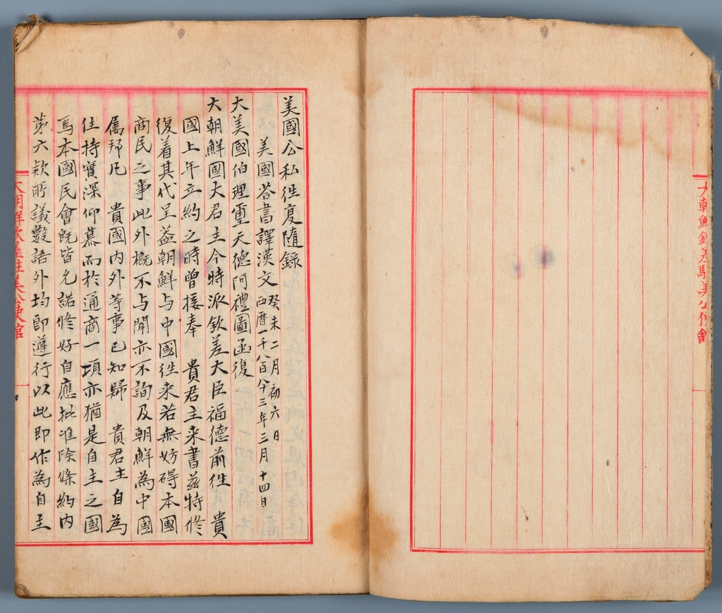 미국공사왕복수록은 공관원 업무편람이라고 할 만한 자료로, 미국 정부와 주고받은 문서의 한문 번역본과 외교 활동 참고 사항을 담았다.