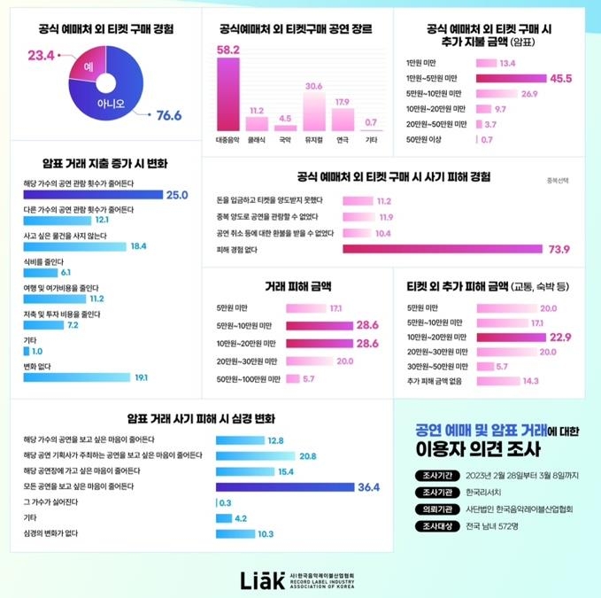 음레협, 572명 대상 실태 조사…"암표 사기당하면 공연 관람 욕구 줄어"