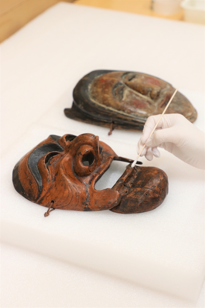 연구원은 탈의 표면 오염물을 제거하기 위해 건식과 습식 방법으로 세척 과정을 거쳤고, 일부 안료가 들뜨는 현상과 목재 갈라짐 등도 순서대로 보존 작업을 진행했다.