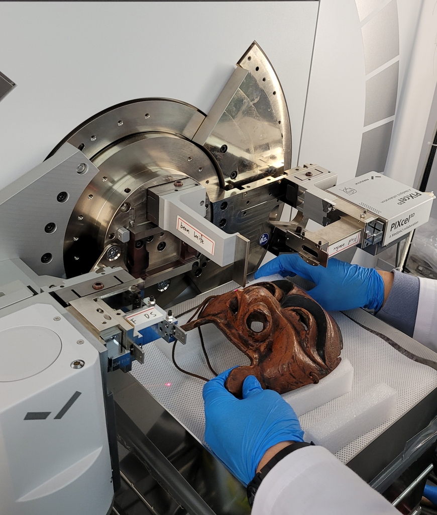 | ▲ 보존처리 중인 국보 안동 하회탈과 병산탈 지난해 대전 국립문화재연구원 문화재보존과학센터에서 열린 '생생(生生) 보존처리 데이' 행사에서 공개된 국보 안동 하회탈과 병산탈의 보존처리 모습 [연합뉴스 자료사진] |