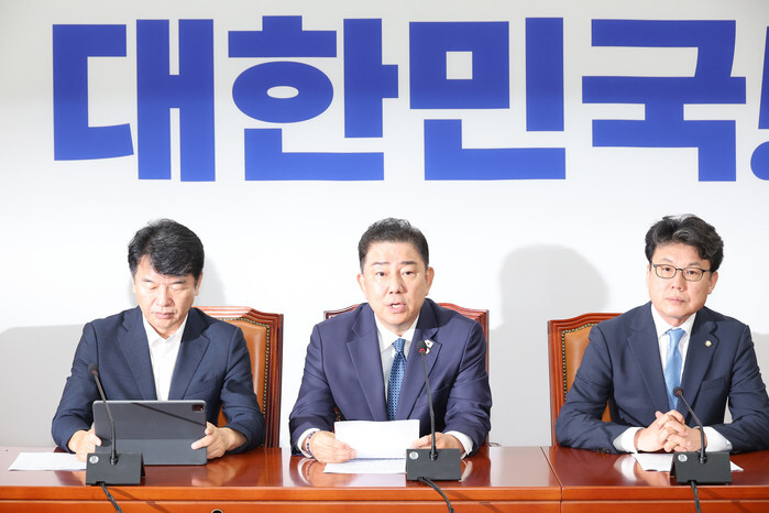 Kim Byung-kee (C), acting leader and floor leader of the ruling Democratic Party, speaks during a meeting of the party at the National Assembly in Seoul on July 31, 2025. (Yonhap)