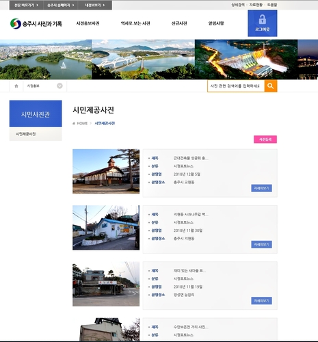 '충주시 사진과 기록' 코너에서 회원 가입 후 사진을 게시하면 승인 과정을 거쳐 공개된다.