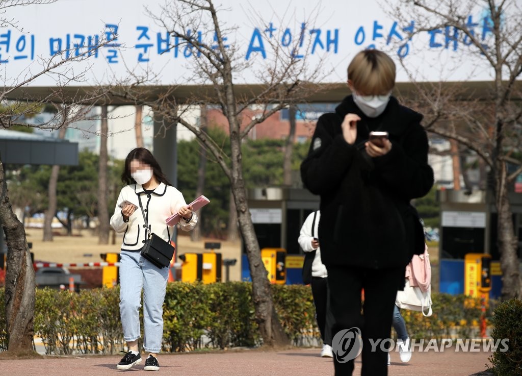 | ▲ Students wearing masks walk on the campus of Chosun University in Gwangju, 330 kilometers south of Seoul, on March 8, 2021. (Yonhap) |