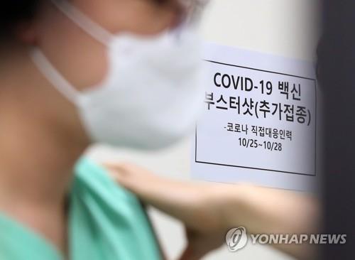| ▲ A health worker at Seoul National University Hospital is given a COVID-19 booster shot on Oct. 25, 2021. (Yonhap) |