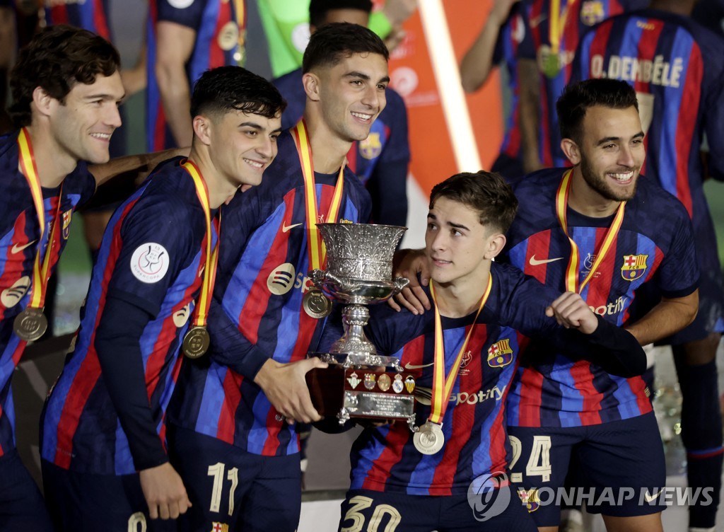 (서울=연합뉴스) 이의진 기자 = 스페인 프로축구 FC바르셀로나가 레알 마드리드와 올 시즌 두 번째 '엘 클라시코'로 치러진 2022-2023시즌 스페인 수페르코파(슈퍼컵) 결승에서 승리하며 우승 트로피를 차지했다.