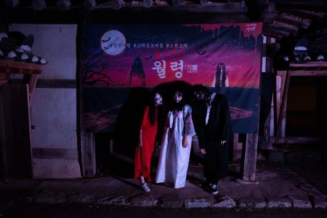(안동=연합뉴스) 손대성 기자 = 경북 안동 월영교 야외민속촌에서 진행하는 고택 공포체험행사 '월령'이 인기를 끌고 있다.