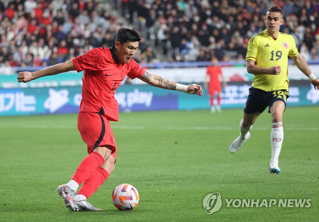 | ▲ 철벽수비 펼치는 김민재 (울산=연합뉴스) 신현우 기자 = 지난달 24일 오후 울산 문수축구경기장에서 열린 대한민국 대 콜롬비아 축구 대표팀의 평가전에서 김민재가 철벽수비를 펼치고 있다. 2023.3.24 nowwego@yna.co.kr |