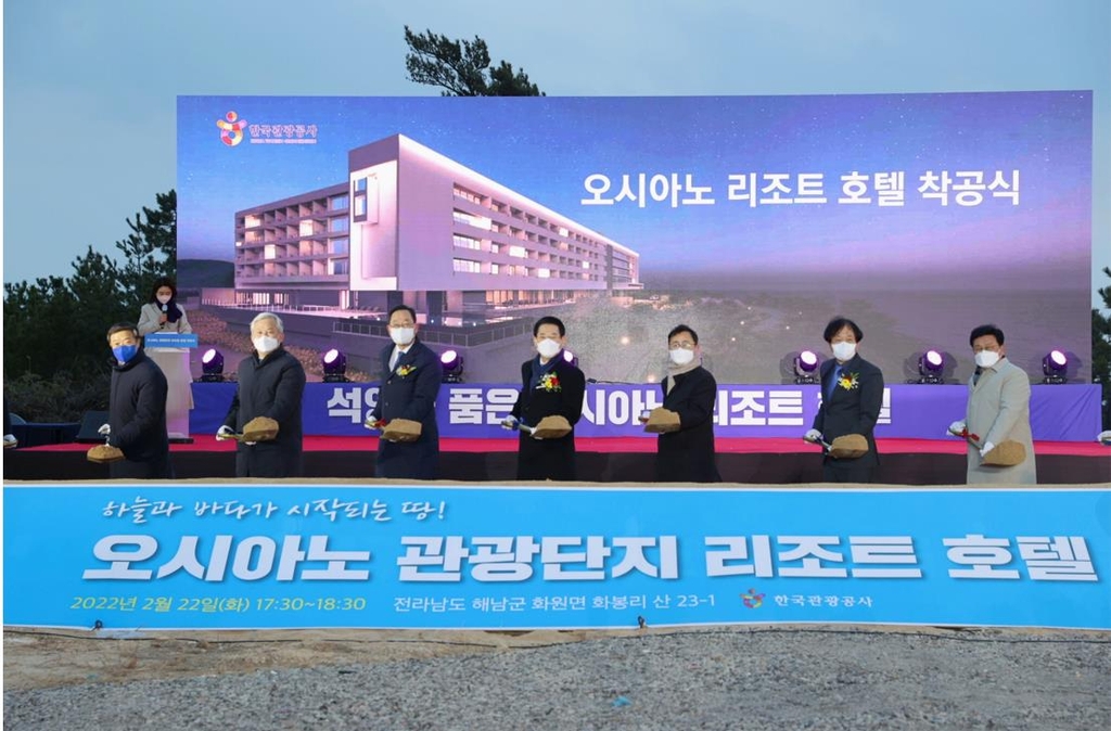 23일 해남군에 따르면 전날 한국관광공사가 해남군 화원면 오시아노 관광단지에 착공한 리조트호텔은 2023년 하반기 완공을 목표로 하고 있다.