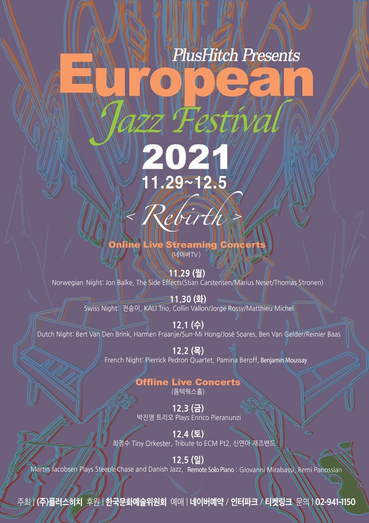 재즈 공연기획사 플러스히치는 이달 29일부터 12월 5일까지 일주일간 온·오프라인으로 '유러피안 재즈 페스티벌 2021'을 연다고 23일 밝혔다.