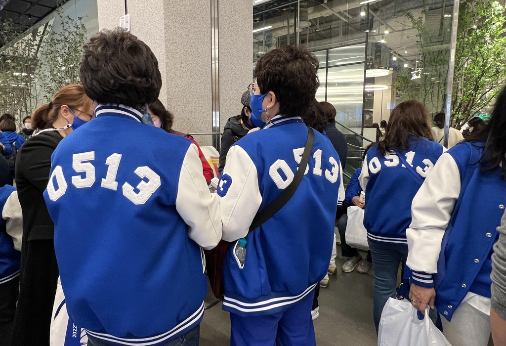 지난 5일 서울 여의도의 한 백화점. 트로트 가수 영탁의 팝업스토어 앞에는 순번을 받고 입장하려는 중년층 30명가량이 줄을 섰다. 이들은 'TAK'과 영탁의 생년월일인 '83', '0513'이 새겨진 파란색 야구 점퍼와 후드 티를 맞춰 입었다.