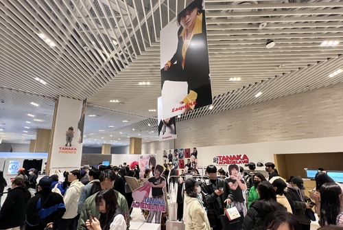 백화점 같은 층에 있는 유튜버 '다나카상' 팝업스토어도 굿즈를 사려는 팬 60명가량으로 북적였다. 개그맨 김경욱의 '부캐'(부캐릭터)인 다나카상은 어눌한 한국말의 일본인 콘셉트로 인기를 끌고 있다.
