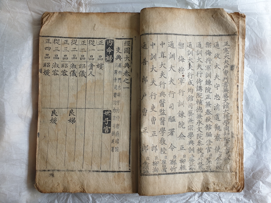 '경국대전 권1∼2'는 1471년 신묘년에 출간된 '신묘대전'으로, 경국대전 판본 중 가장 이른 편이다. 1434년에 만들어진 금속활자 '초주갑인자'로 인쇄했다.
