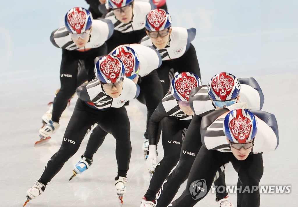 | ▲  South Korean Olympic short track speed skaters train at Capital Indoor Stadium in Beijing on Feb. 6, 2022. (Yonhap) |