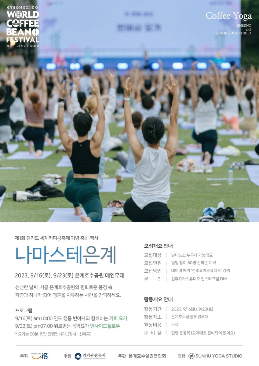 (시흥=연합뉴스) 김인유 기자 = 경기 시흥시는 10월 개최하는 '제1회 경기도 세계 커피콩 축제' 축하 행사로 요가 이벤트 '나마스테 은계'를 진행한다고 4일 밝혔다.
