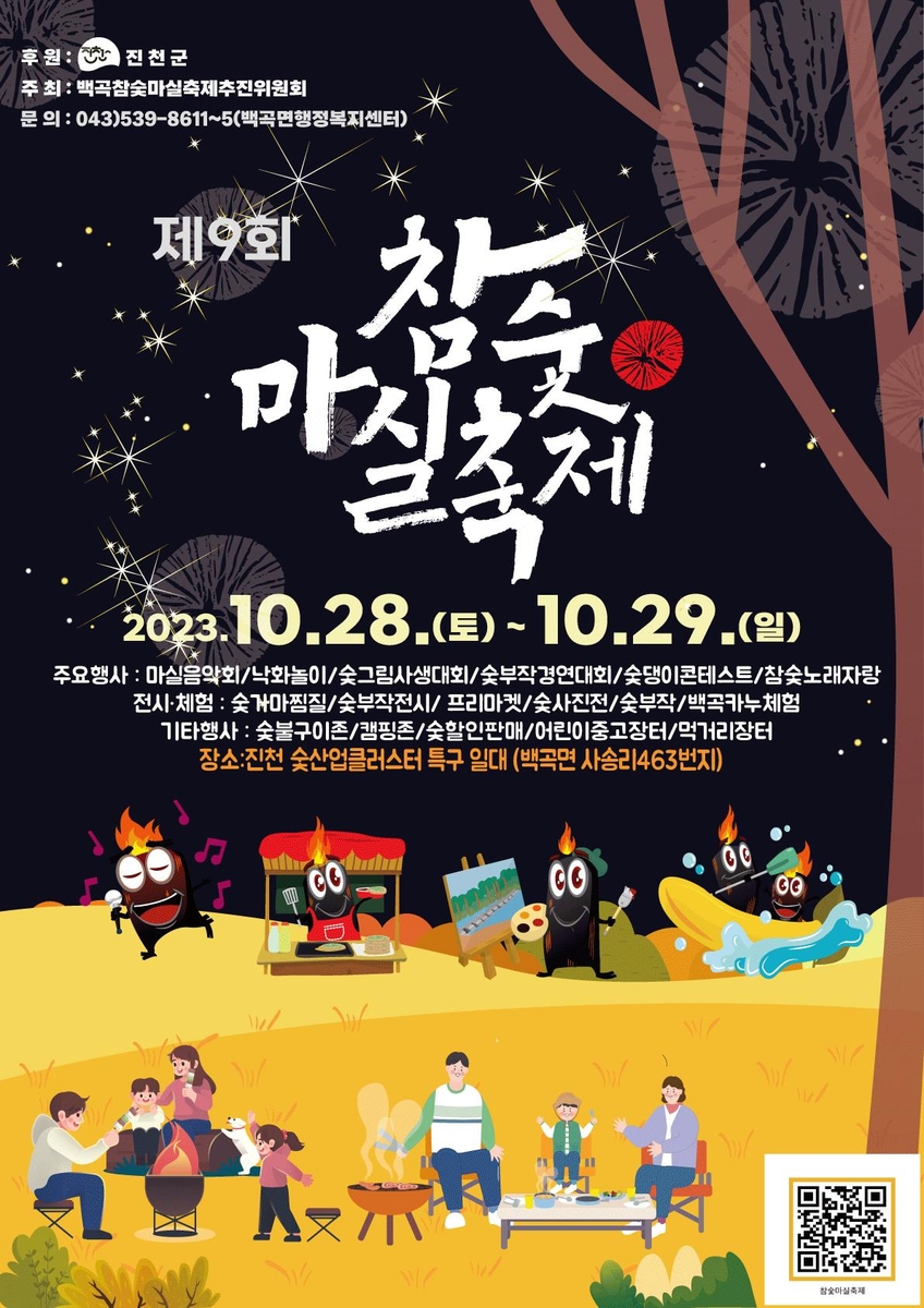 백곡 참숯마실축제추진위원회가 주관하고 진천군이 후원하는 이번 축제에서는 참숯으로 다양한 꼬치구이를 구워 먹을 수 있는 숯불구이 존과 숯을 이용한 장식품 경연, 숯 그림 사생대회 등 다양한 프로그램이 펼쳐진다.