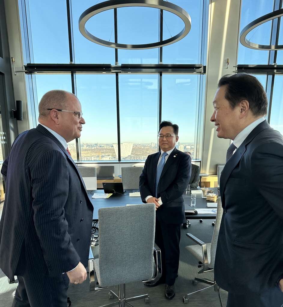 Chey met with Jakob Poulsen, CEO of Copenhagen Infrastructure Partners (CIP), a Danish investment firm specializing in infrastructure investments, on the same day and discussed a wide range of topics, including wind power, energy storage systems and small modular reactors.