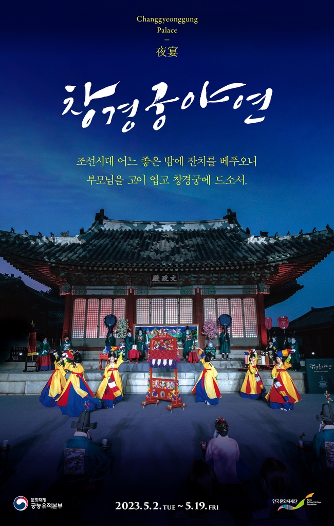 문화재청 궁능유적본부와 한국문화재재단은 5월 2일부터 19일까지 서울 종로구 창경궁 문정전에서 '효심'을 주제로 한 관람객 참여 프로그램인 '창경궁 야연(夜宴)'을 선보인다고 17일 밝혔다.