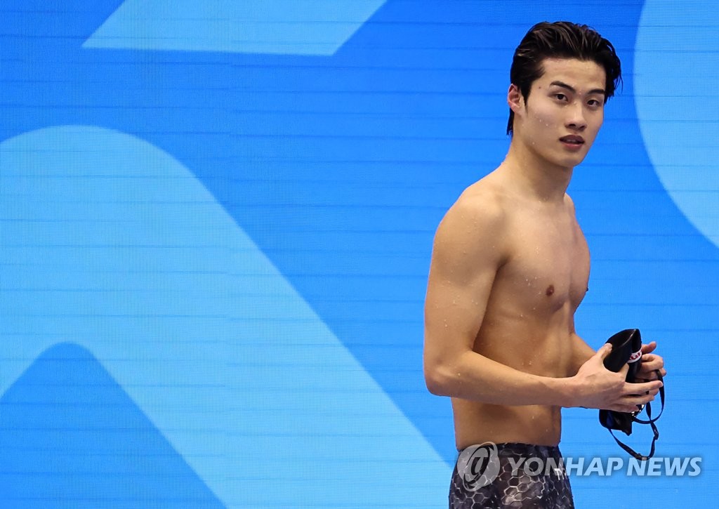 | ▲ Kim Woo-min of South Korea leaves the pool after competing in the final of the men's 400-meter freestyle at the World Aquatics Championships at Marine Messe Fukuoka Hall A in Fukuoka, Japan, on July 23, 2023. (Yonhap) |