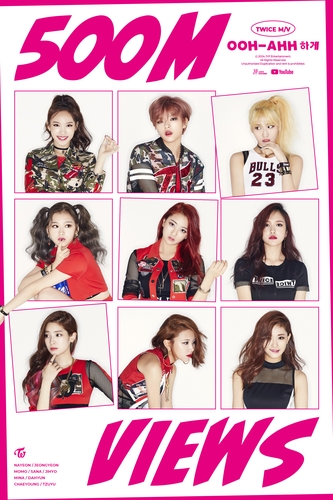 SEOUL, July 12 (Yonhap) -- The music video for K-pop girl group TWICE's debut single "Like Ooh-Ahh" has garnered more than 500 million views on YouTube.