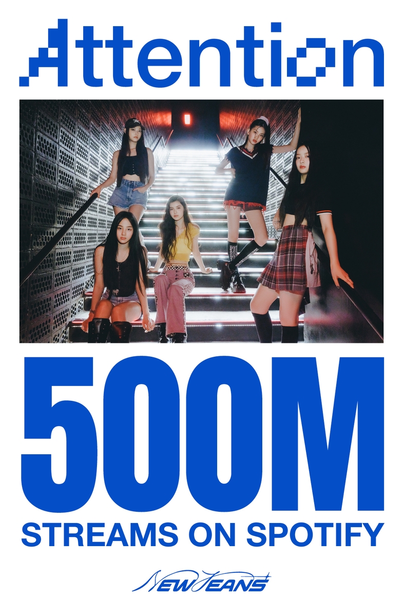 | ▲ 뉴진스 '어텐션', 스포티파이 5억 스트리밍 [어도어 제공. 재판매 및 DB 금지] |