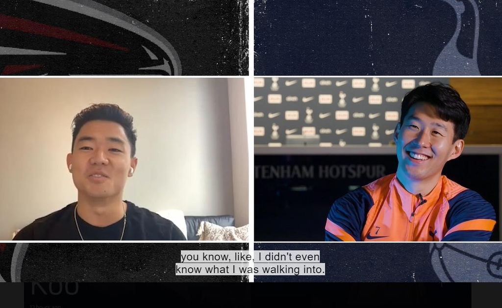 (서울=연합뉴스) 이영호 기자 = 잉글랜드 프로축구 프리미어리그 무대에서 맹활약하는 '축구 스타' 손흥민(29·토트넘)과 미국프로풋볼(NFL) 올스타에 빛나는 구영회(27·애틀랜타 팰컨스)가 온라인에서 자랑스러운 '한국인 스타의 만남'을 연출했다.