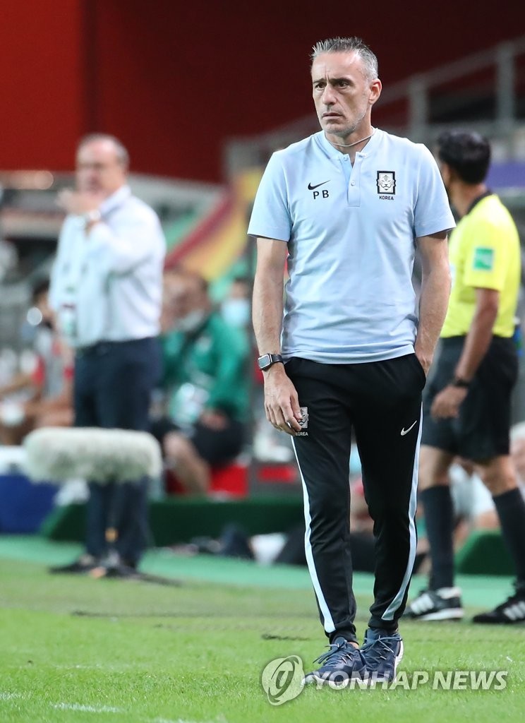 | ▲  South Korea head coach Paulo Bento watches his team in action against Iraq during the team's Group A match against Iraq in the final Asian qualifying round for the 2022 FIFA World Cup at Seoul World Cup Stadium in Seoul on Sept. 2, 2021. (Yonhap) |