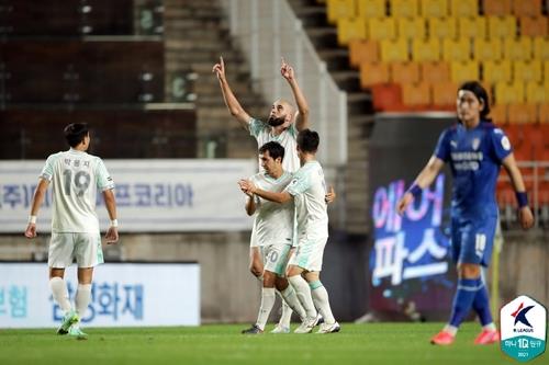 Jeju, Seongnam and FC Seoul, on the other hand, currently occupy ninth, 10th and 11th spots. Jeju and Seongnam have 25 points apiece, and FC Seoul have 24. Gwangju FC are bringing up the rear with 22 points, in position to be relegated to the K League 2 next year, but there's still too much football left this year to call any one of Jeju, Seongnam or FC Seoul safe from that ignominy.